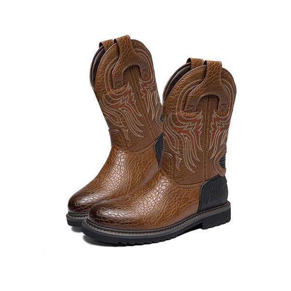 MEN'S RETRO TEXTURED ROUND TOE WESTERN BOOTS 38618275S