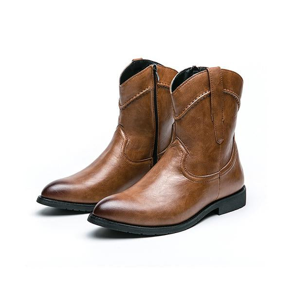 MEN'S RETRO SIDE ZIPPER POINTED LEATHER BOOTS 66084987YL