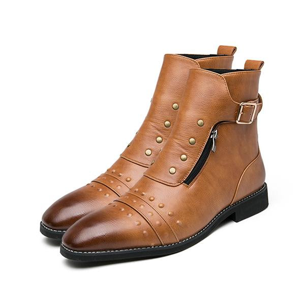 MEN'S STYLISH RIVET POINTED TOE CASUAL RETRO ANKLE BOOTS 38395405S