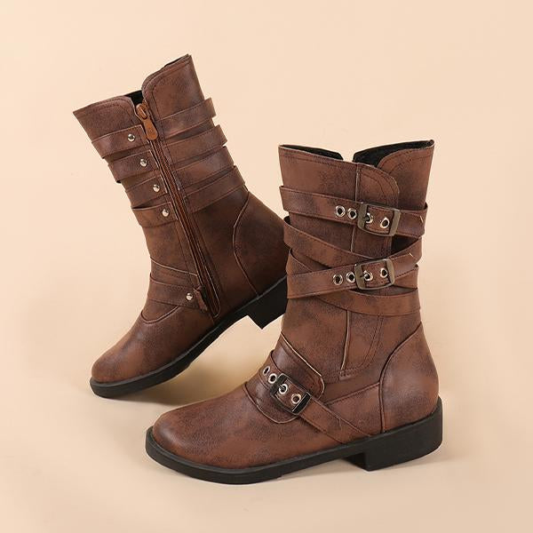 MEN'S VINTAGE METAL BUCKLE SIDE ZIPPER WORK BOOTS 78488756S