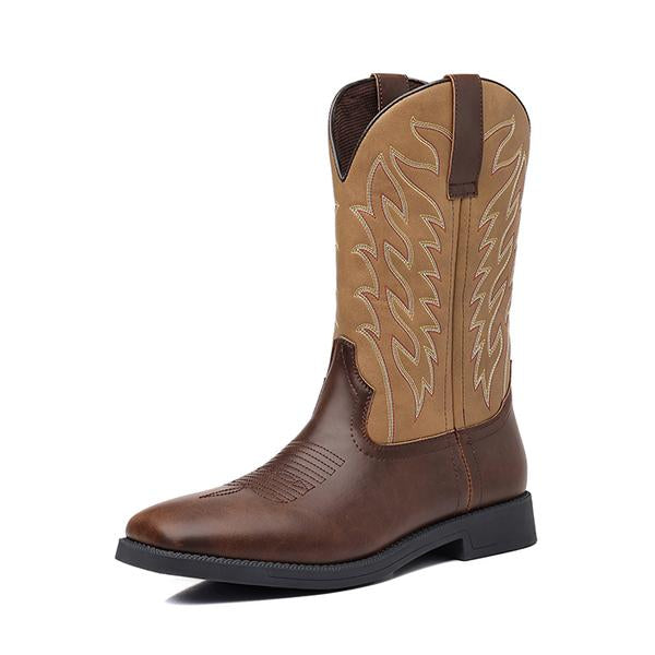 MEN'S RETRO POINTED THICK HEELED WESTERN COWBOY BOOTS 68025916YL