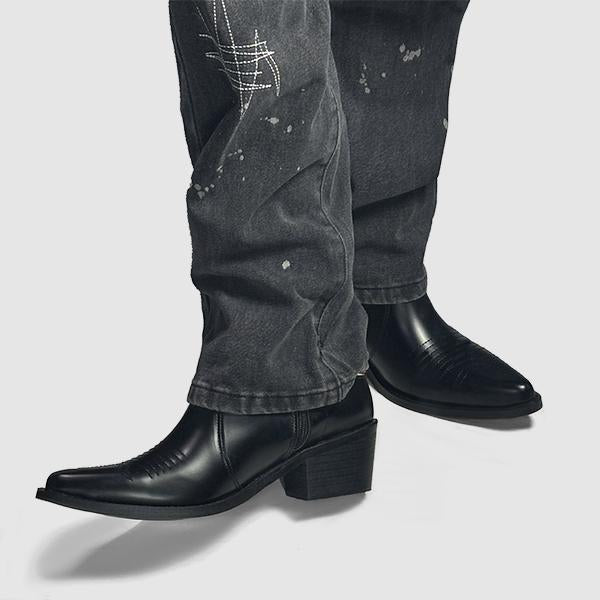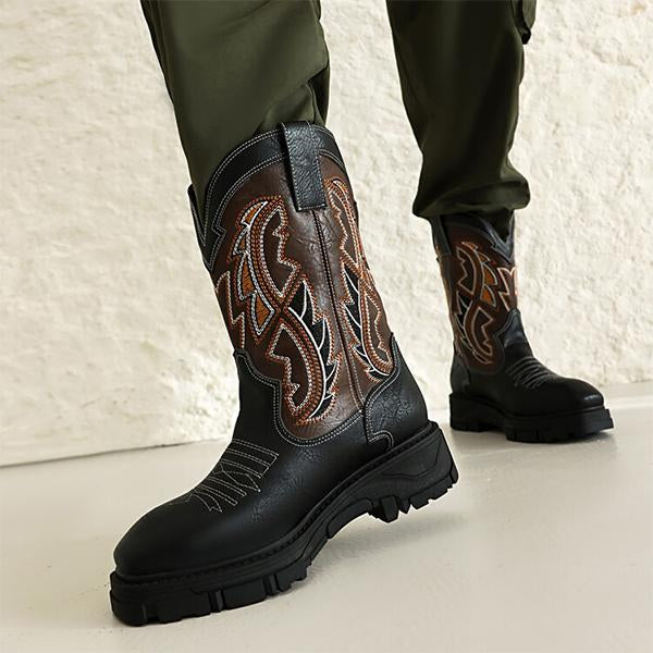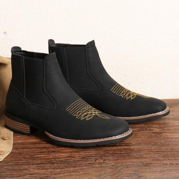 MEN'S RETRO EMBROIDERED LEATHER BOOTS 00575432YL