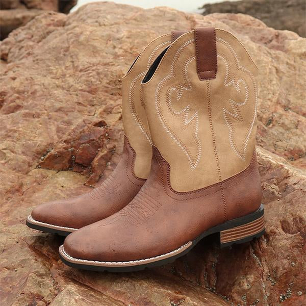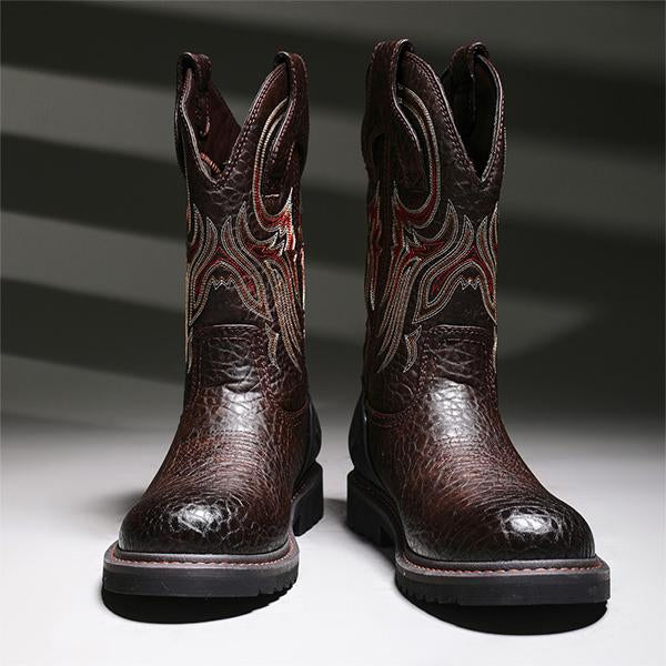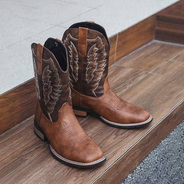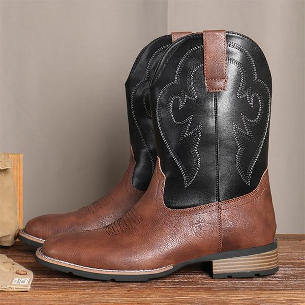 MEN'S COWBOY WESTERN BOOT DURABLE FASHIONABLE RETRO CLASSIC EMBROIDERED PULL ON SLIP RESISTANT BOOTS 09492531YL