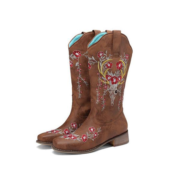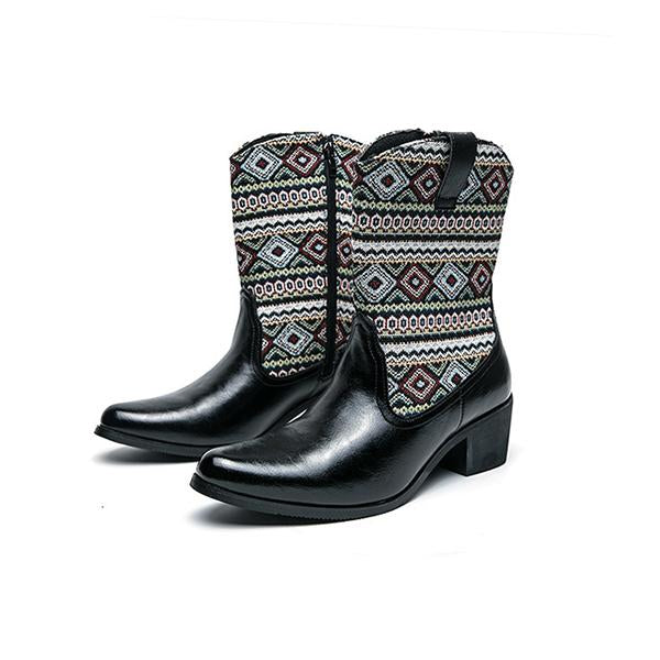 MEN'S LONG EMBROIDERED RETRO LOW HEELED BOOTS 79892115YL