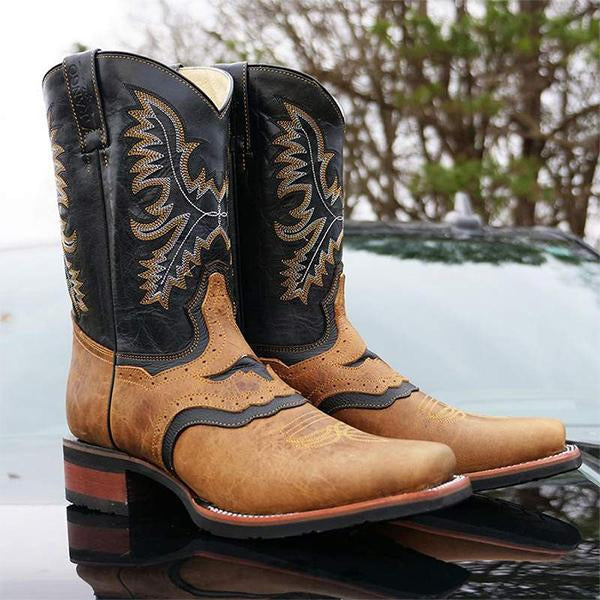 MEN'S COWBOY WESTERN BOOT TRADITIONAL RETRO SQUARE TOE COUNTRY WORK BOOTS 24326222YL