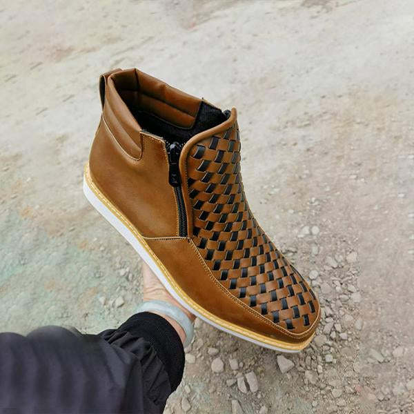 MEN'S CASUAL BRAIDED SIDE ZIPPER COWBOY BOOTS 81373144S