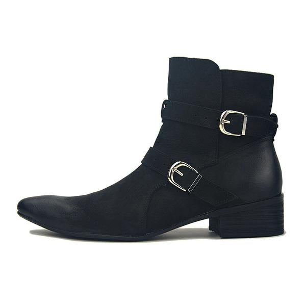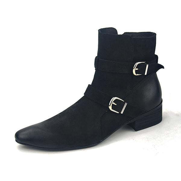 MEN'S CASUAL CHUNK HEEL DOUBLE BUCKLE CHELSEA BOOTS 04157209S
