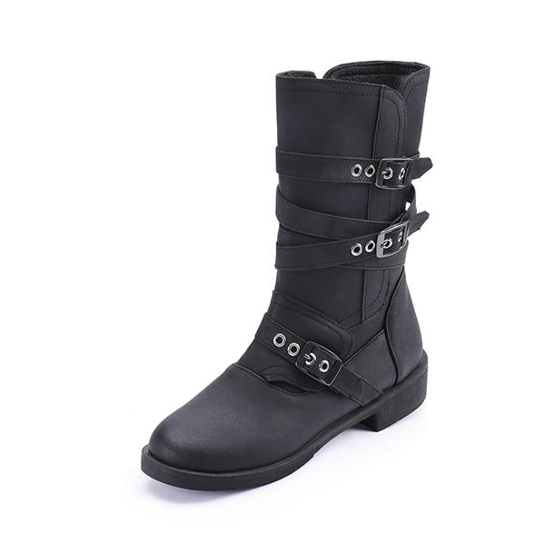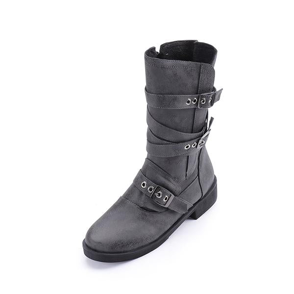 MEN'S CASUAL FLAT SIDE ZIPPER BELT BUCKLE MID-CALF BOOTS 51765090S