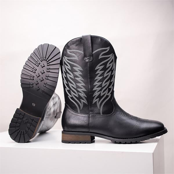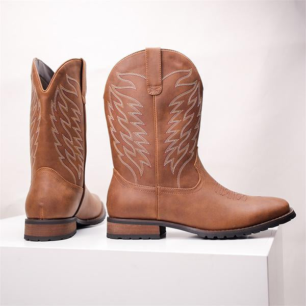 MEN'S EMBROIDERED RETRO SQUARE TOE COWBOY BOOTS 74065198YL