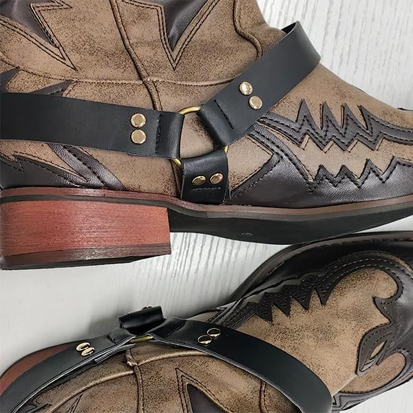 MEN'S EMBROIDERY DESIGN RETRO LEATHER BOOTS 58186144YL