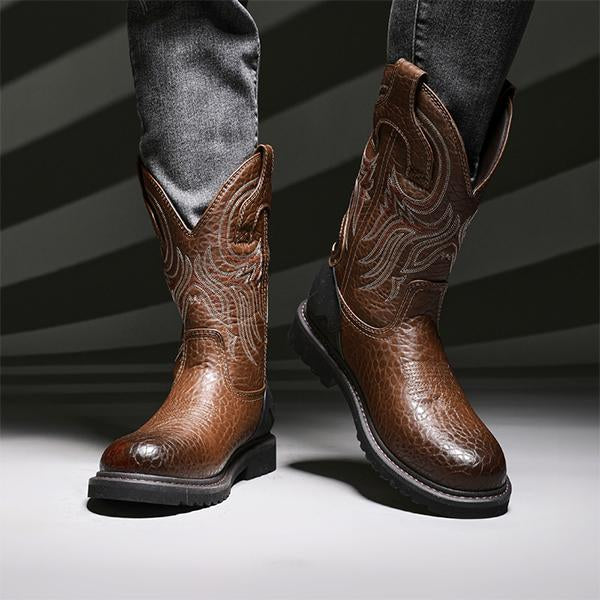 MEN'S HIGH TUBE TOTEM EMBROIDERY WORKWEAR KNIGHT BOOTS 97495555YL