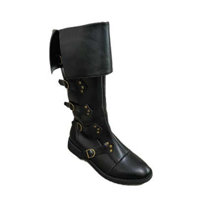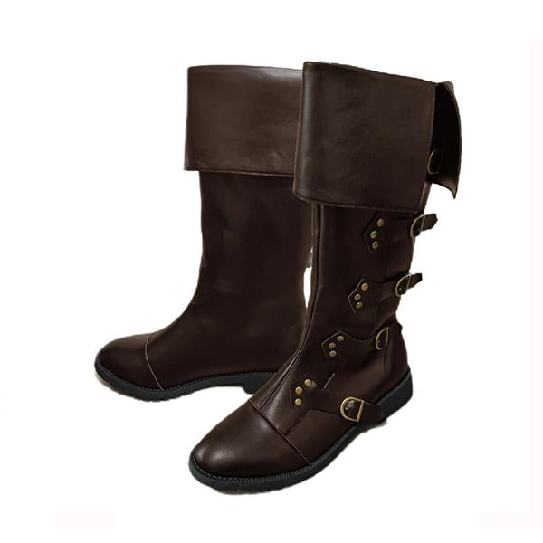 MEN'S MEDIEVAL VINTAGE BELT BUCKLE KNEE-HIGH BOOTS 97796374S