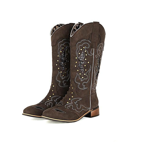 MEN'S MID LENGTH RETRO EMBROIDERED COWBOY BOOTS 75035467YL