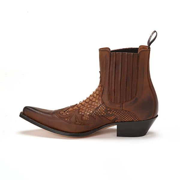 MEN'S POINTED TOE PYTHON PRINT SHORT COWBOY BOOTS 72489751S