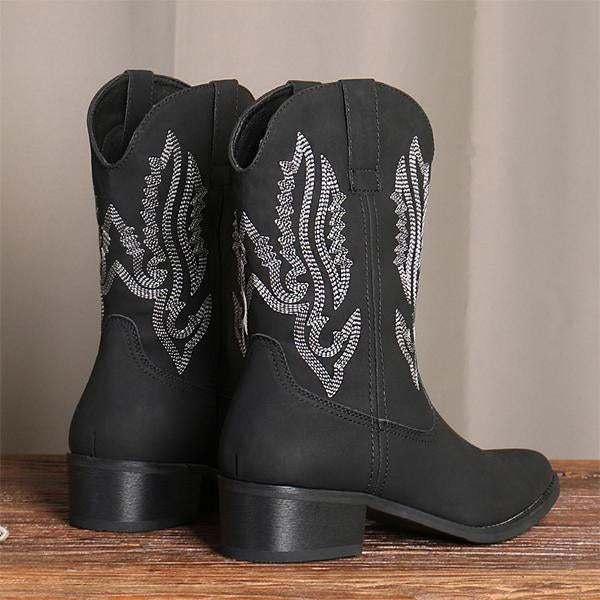 MEN'S RETRO CONTRASTING EMBROIDERY DESIGN WESTERN BOOTS 76234851YL