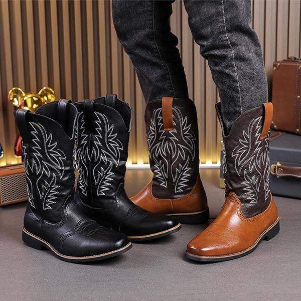 MEN'S RETRO EMBROIDERED LEATHER BOOTS 00575432YL