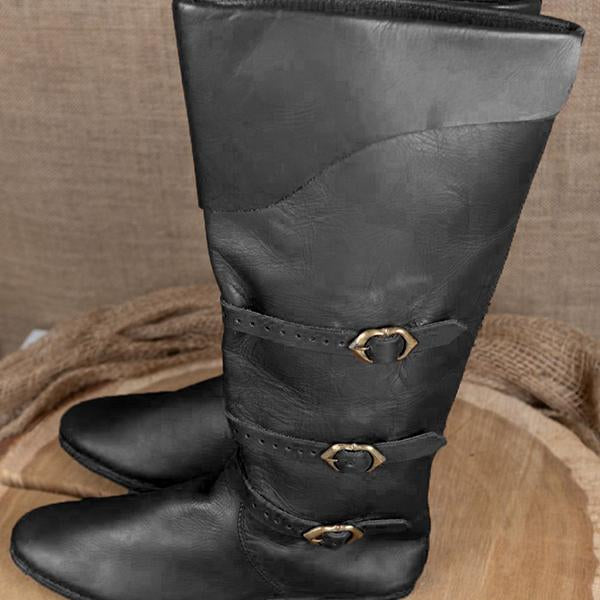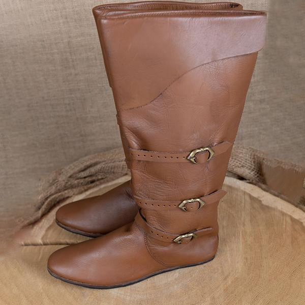 MEN'S RETRO MEDIEVAL FLAT BUCKLE BOOTS 82089783S