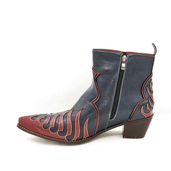 MEN'S RETRO POINTED THICK HEELED WESTERN COWBOY BOOTS 68025916YL