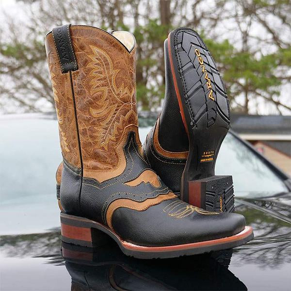 MEN'S ROMAN SQUARE TOE STITCHING RETRO WESTERN BOOTS 67072837S