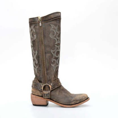 MEN'S SIDE ZIPPER EMBROIDERED BUCKLE WESTERN BOOTS 41353757S