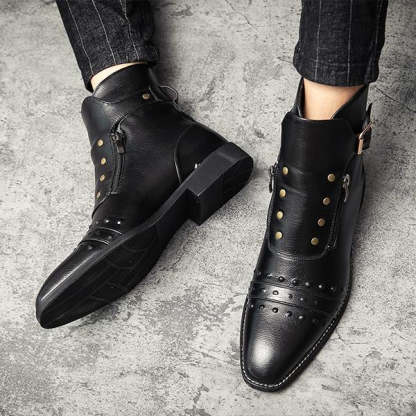 MEN'S STYLISH RIVET POINTED TOE CASUAL RETRO ANKLE BOOTS 38395405S