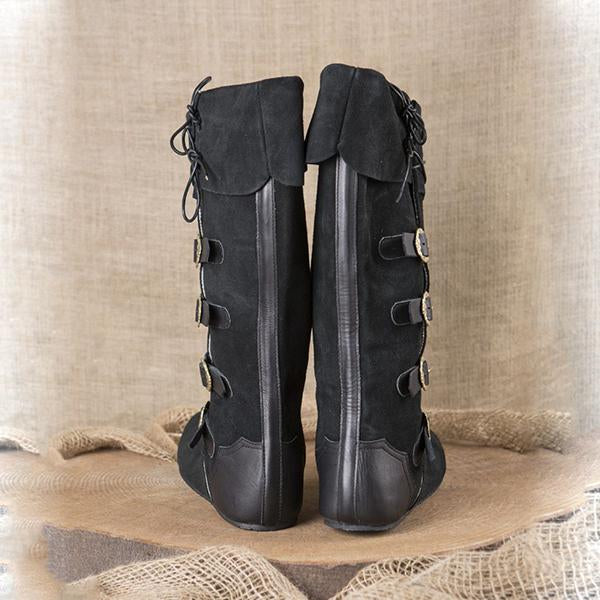 MEN'S VINTAGE MEDIEVAL BELT BUCKLE KNEE-HIGH BOOTS 02395535S