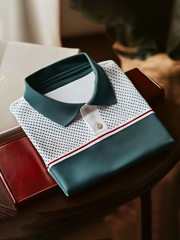 Men's Classic Business Check Logo Button Short Sleeve Polo Shirt