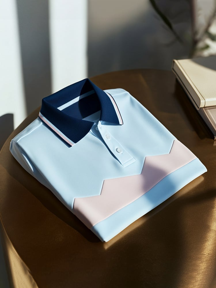 Men's Classic Business Check Logo Button Short Sleeve Polo Shirt
