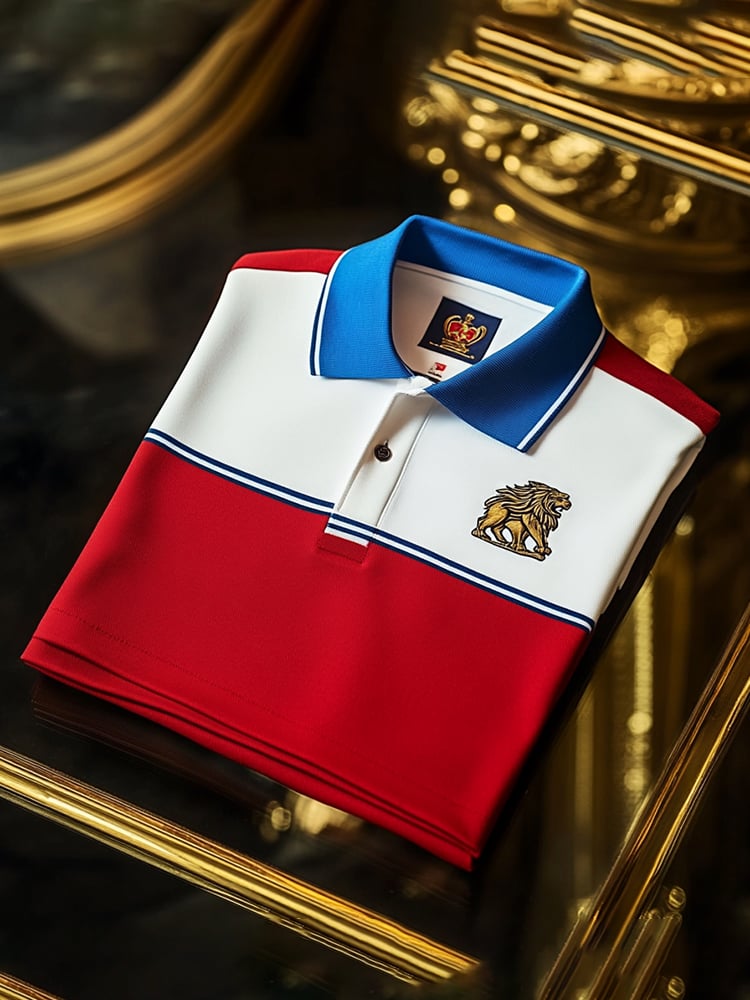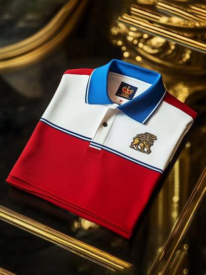 Men's Classic Business Check Logo Button Short Sleeve Polo Shirt