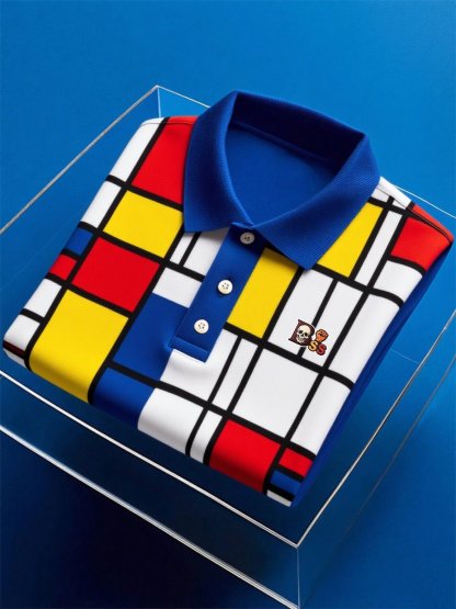 Men's Business Casual Artistic Button Short Sleeve Polo Shirt