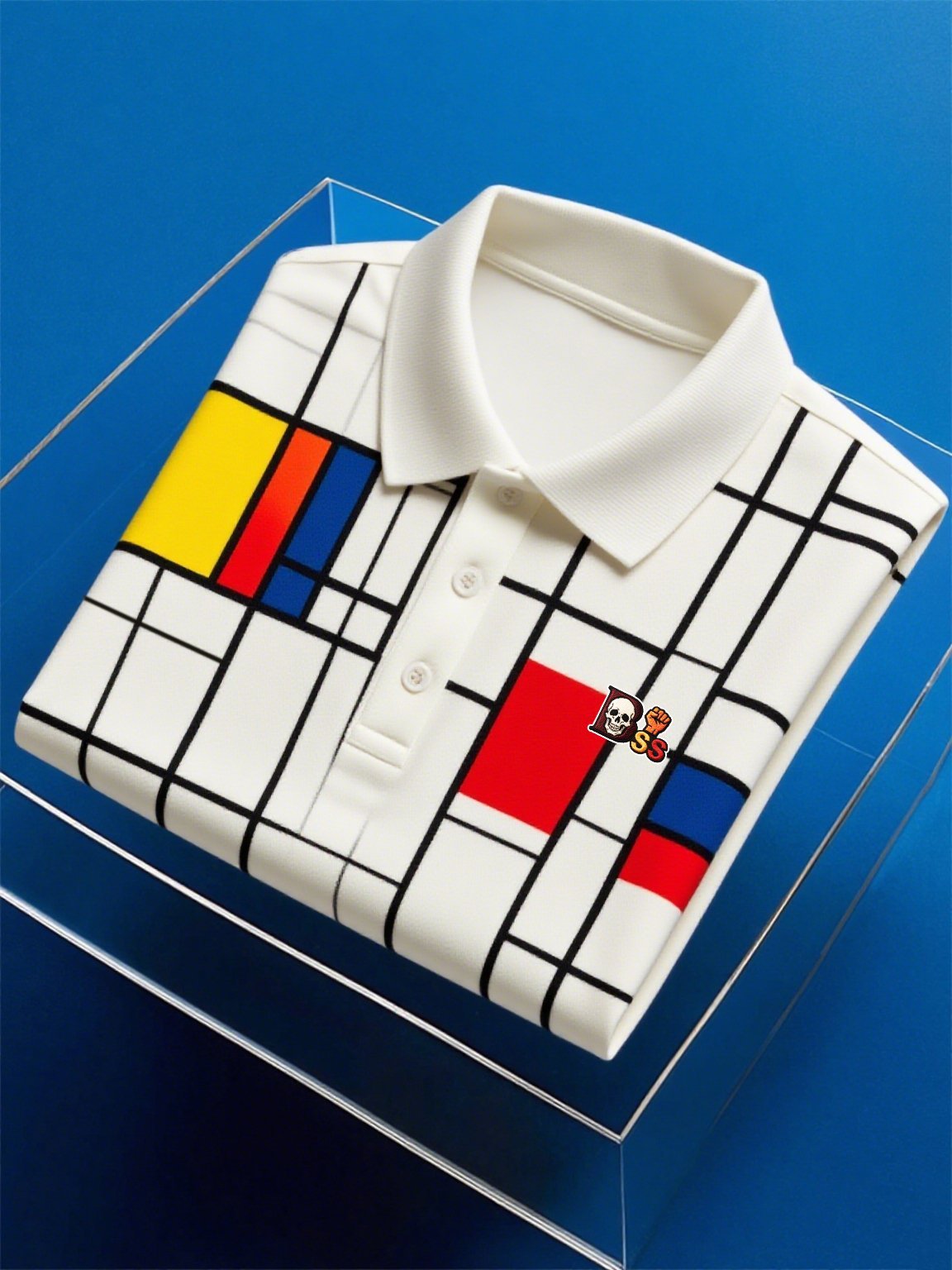 Men's Business Casual Artistic Button Short Sleeve Polo Shirt