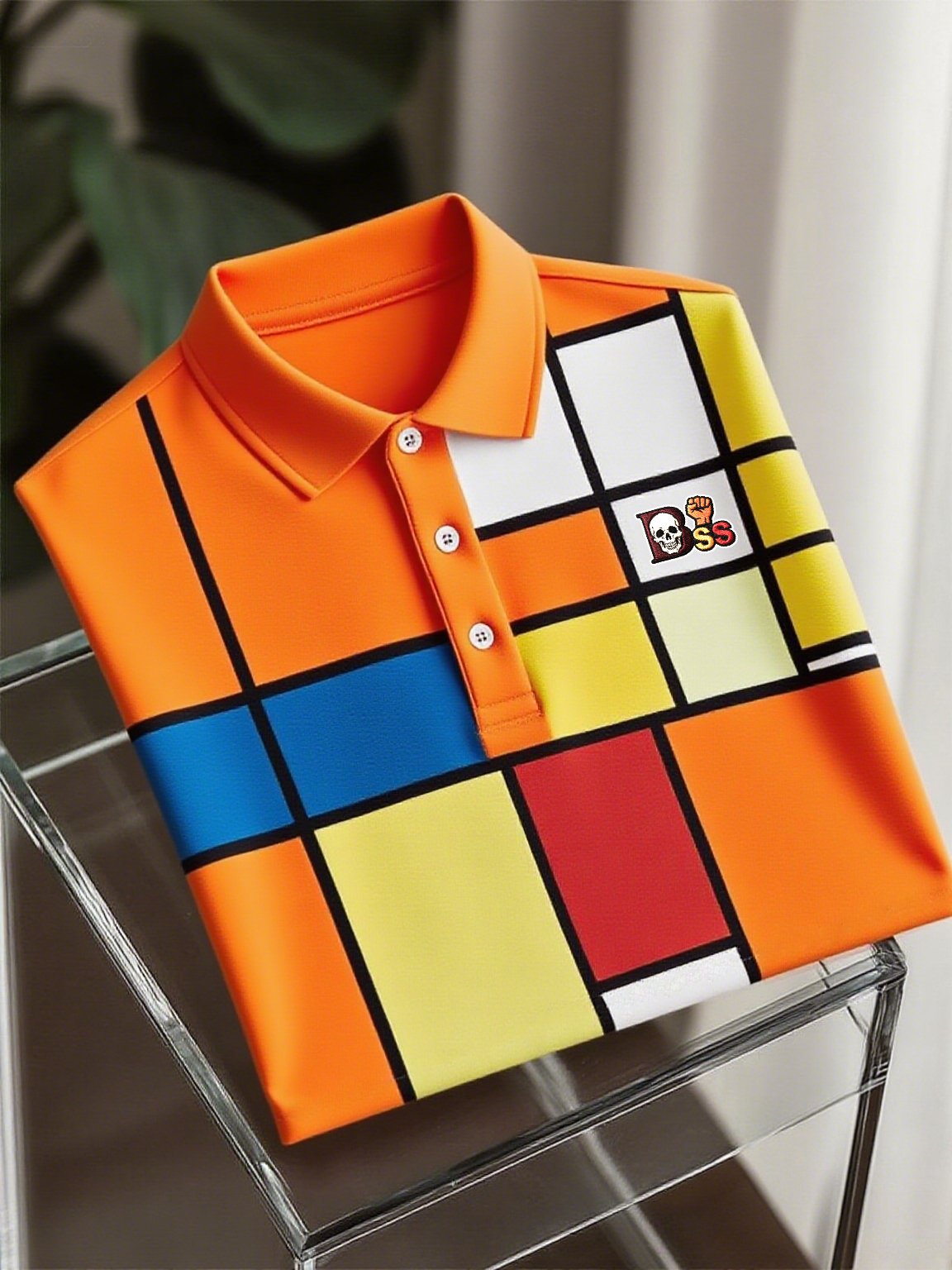 Men's Business Casual Artistic Button Short Sleeve Polo Shirt