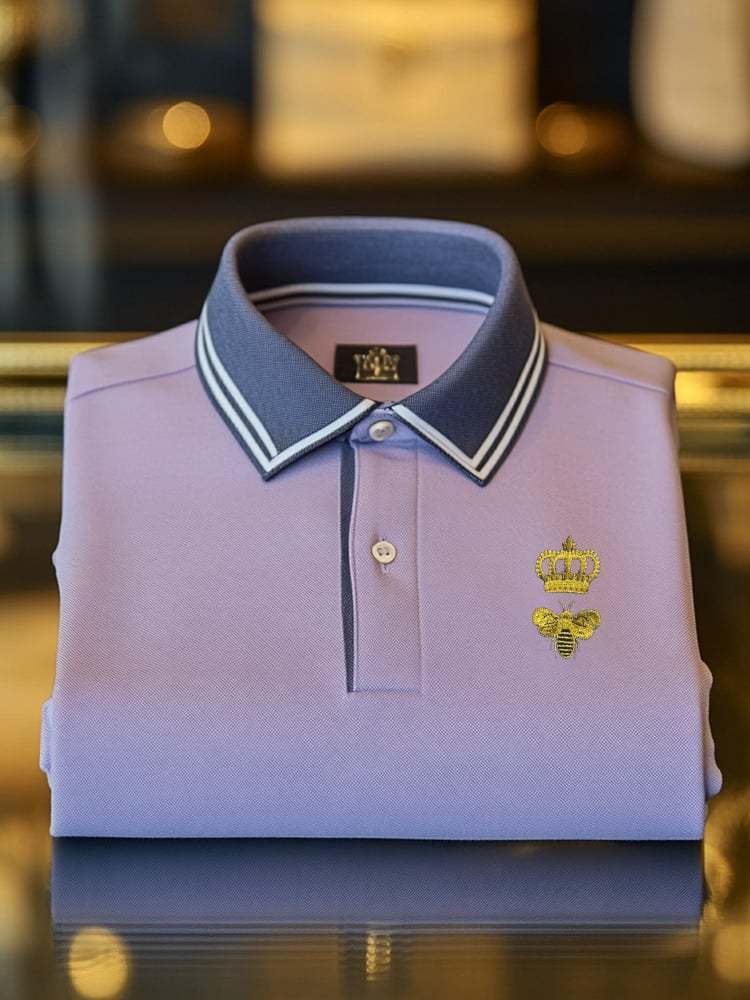 Men's Classic Business Check Button Short Sleeve Polo Shirt