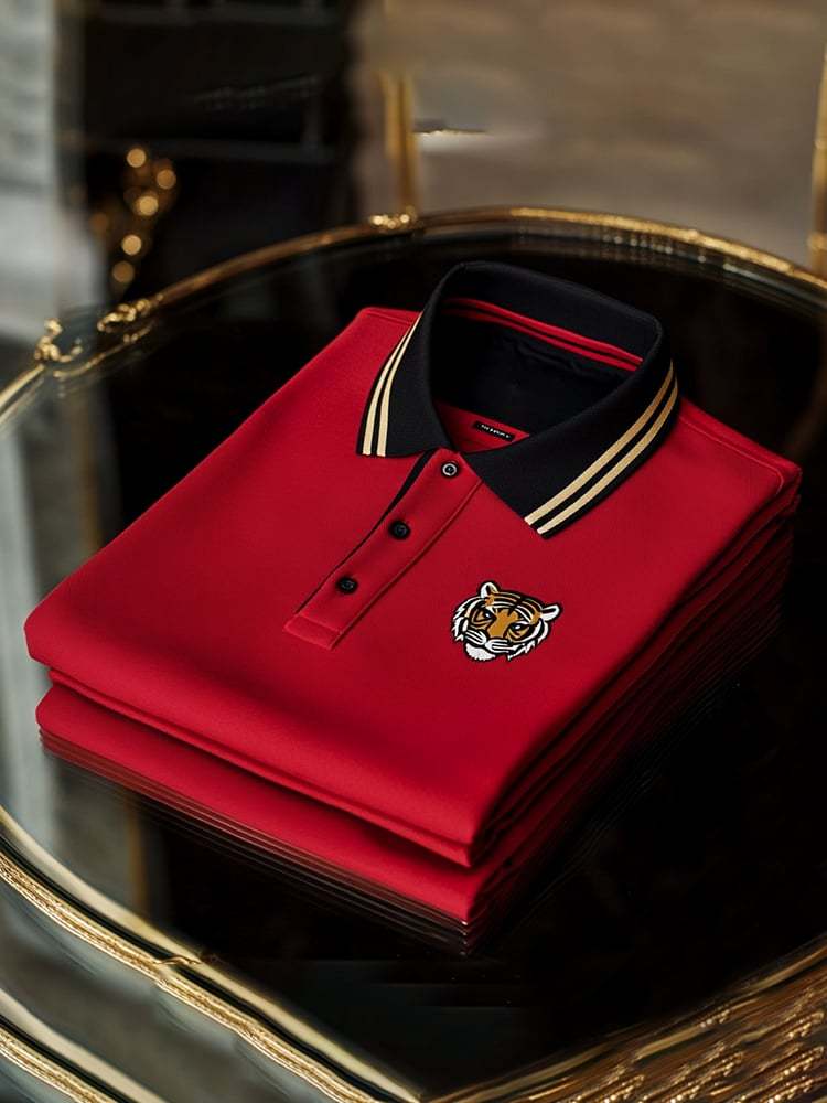 Men's Classic Business Check Logo Button Short Sleeve Polo Shirt