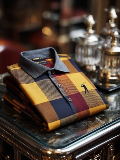 Men's Check Business Casual Short Sleeve Polo Shirt